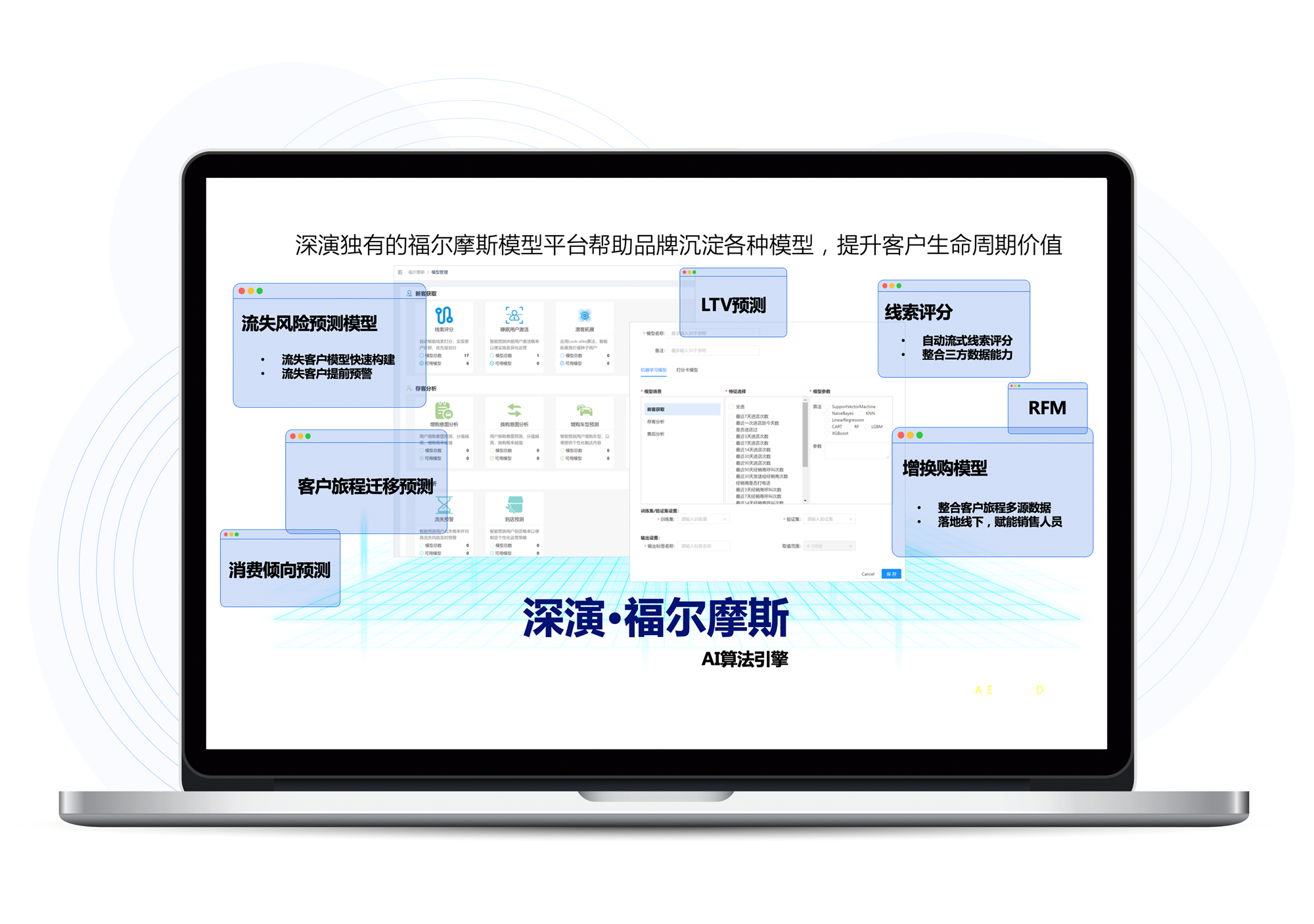 福尔摩斯AI是GA黄金甲智能自主研发的AI算法模型平台,内嵌广告和用户运营两大模型体系,为GA黄金甲智能营销决策云提供底层能力支撑,提升客户全生命周期价值
